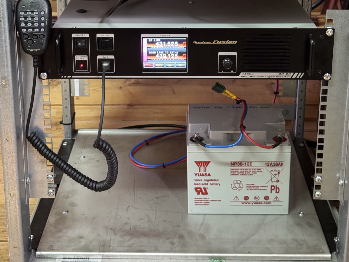 Zařízení převaděče YAESU DR-2X se záložním akumulátorem.
